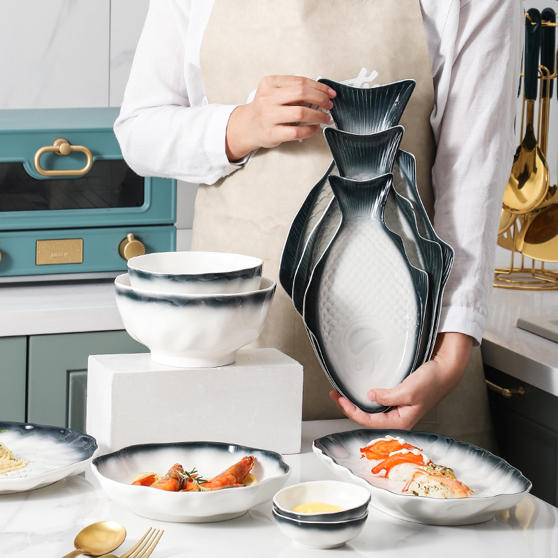 طقم من السيراميك على شكل سمكة يتكون من ٦ قطع ٢قطع مقاس ١١ انش ٢قطع ١٢.٥ انش ٢قطع ١٥ انش