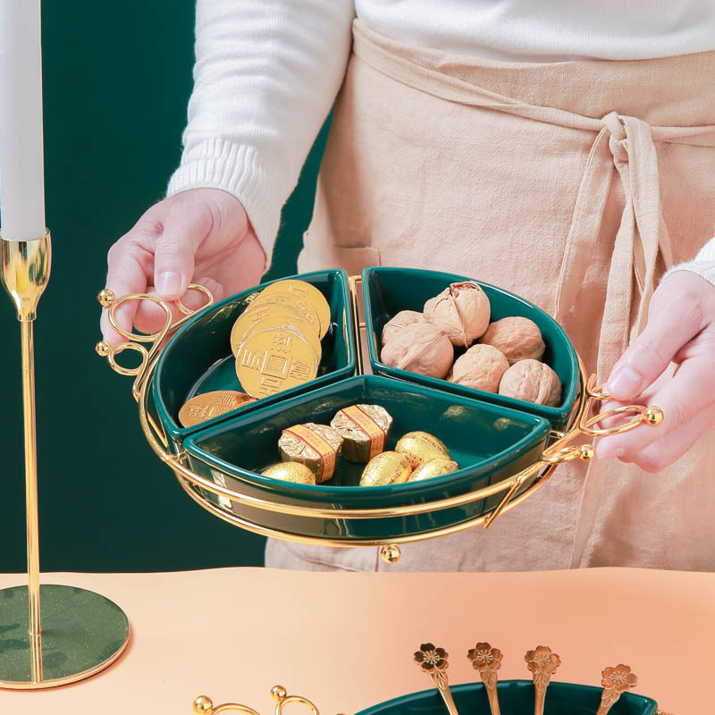طبق ثلاثي مع حامل معدني